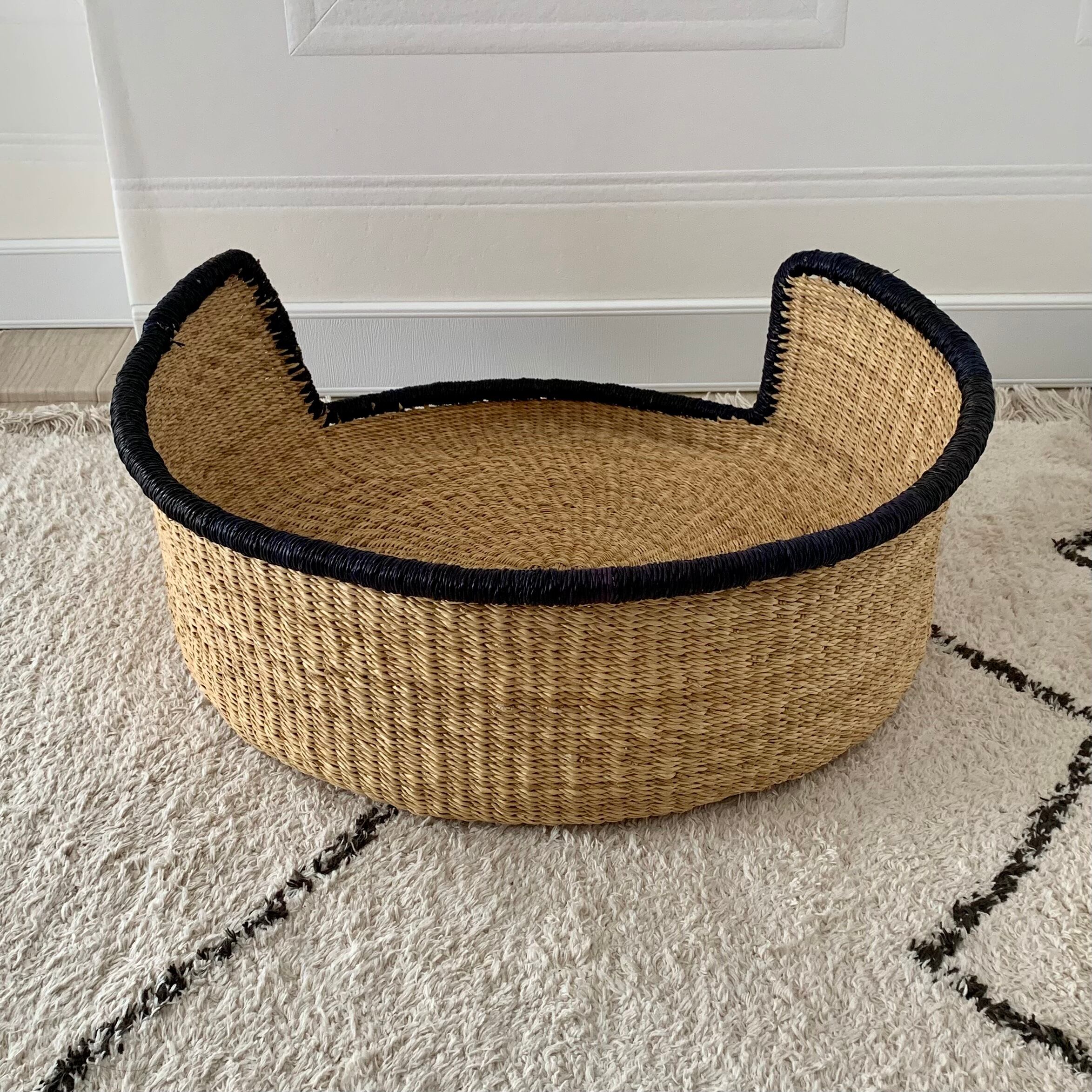 バスケットの素材、お作りの中でささくれがある箇所があります。メンテナンス時、大きなささくれはカットしてひっかかりがないようにしていますが、バスケットの底部分、内側にはクッション、布団、毛布、ライナーなどを敷いて、お使いください。